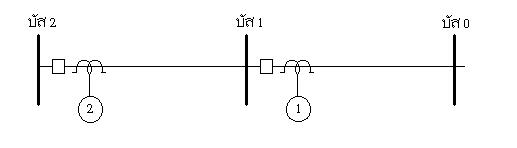 จากระบบไฟฟ้ากำลังในรูปที่ 3.28 จงคำนวณหาช่วงเวลาทำงานของรีเลย์กระแสเกินหมายเลข 1 กับ 2 โดยสมมติว่า ขนาดกระแสฟอลต์ค่าสูงสุดเท่ากับ 2000 แอมแปร์ อัตราการทดกระแสของหม้อแปลงทดกระแสทั้งสองชุดคือ 200/1 รีเลย์หมายเลข 1 มีค่าเซตติ้งกระแส 100% และรีเลย์หมายเลข 2 มีค่าเซตติ้งกระแส 125% รีเลย์หมายเลย 1 ตั้งค่าตัวคูณเวลาไว้เท่ากับ 0.2 ช่วงเวลาลำดับ ( grading margin ) ระหว่างรีเลย์ทั้งสองคือ 0.5 วินาที