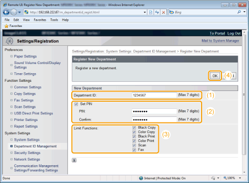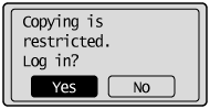 ![]() A department where the feature is not restricted can select <Yes> and then enter its department ID and PIN to use this product.