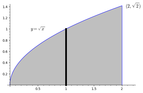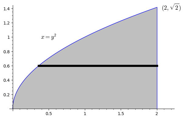 $ R = \{ (x,y) : 0 \le x \le 2 , 0 \le y \le \sqrt{x} \} $