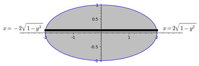 ดังนั้น $ \int_{-2}^2 \int_{-\sqrt{1-\frac{x^2}{4}}}^{\sqrt{1-\frac{x^2}{4}}} f(x,y)dydx \qquad = \int_{-1}^1 \int_{-2\sqrt{1-y^2} }^{2 \sqrt{1-y^2 }} f(x,y)dxdy $