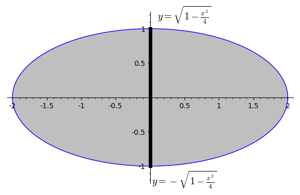 $ R = \{ (x,y) : -2 \le x \le 2 , -\sqrt{1-\frac{x^2}{4}} \le y \le \sqrt{1-\frac{x^2}{4}} \} $