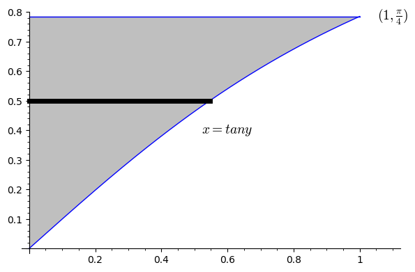 ดังนั้น $ \int_0^1 \int_{arctan x}^{\frac{\pi}{4}} f(x,y)dydx \qquad = \int_0^{\frac{\pi}{4}} \int_0^{\tan y} f(x,y)dxdy $